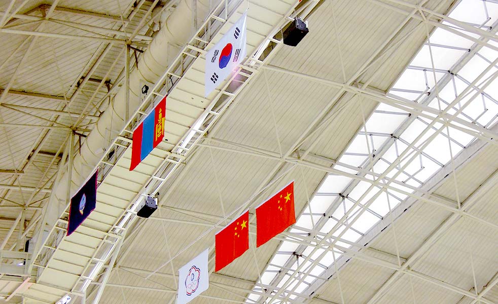 第六屆東亞運動會設(shè)田徑、水上運動、體操、舉重、柔道、跆拳道、空手道、自行車、射擊、足球、籃球、排球、乒乓球、羽毛球、網(wǎng)球、軟式網(wǎng)球、龍舟、曲棍球、棒球、武術(shù)、保齡球、體育舞蹈、壁球及擊劍等24個大項、289個小項。