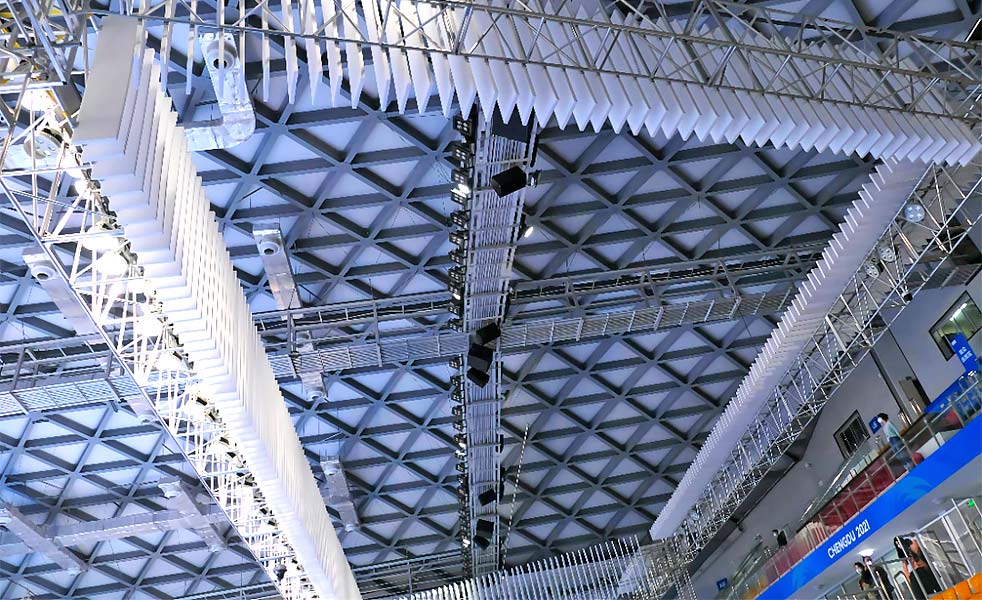 在體育館的東西南北四個(gè)區(qū)域,我們配置了23只LAX雙12寸3D束波全頻揚(yáng)聲器,這些揚(yáng)聲器均以高難度的方式懸吊在體育館的馬道之下。高性能揚(yáng)聲器的均勻布局確保了整個(gè)觀眾席區(qū)域聲音實(shí)現(xiàn)充分的聲音傳播以及足夠的響度,從而使觀眾在觀看緊張刺激的賽事或活動(dòng)時(shí),能夠體驗(yàn)到耳目一新、強(qiáng)烈震撼的感受,充分享受到最佳的音響效果。