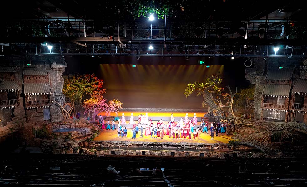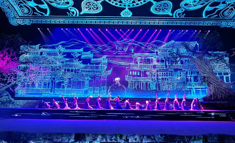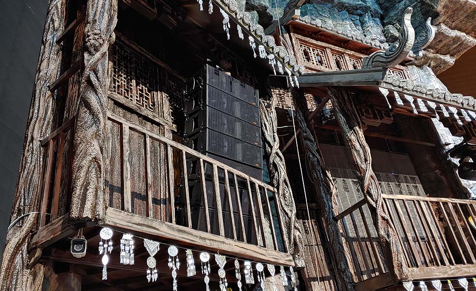 中國首創(chuàng)室內(nèi)實景互動演藝、大型民俗篝火狂歡體驗秀《鳳凰樣子》在“鳳凰樣子文化村”為廣大觀眾燃情獻演!劇場內(nèi)的主擴聲揚聲器用LAX LD系列,滿足了觀眾優(yōu)質(zhì)的視聽體驗需求,為充滿湘西特色文化的精彩劇目打造出一場完美的視聽盛宴。