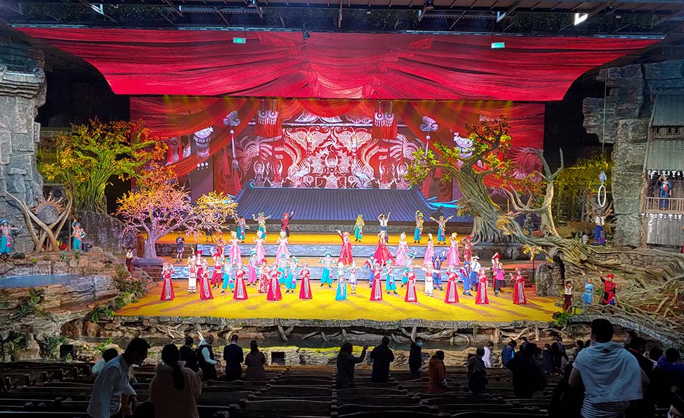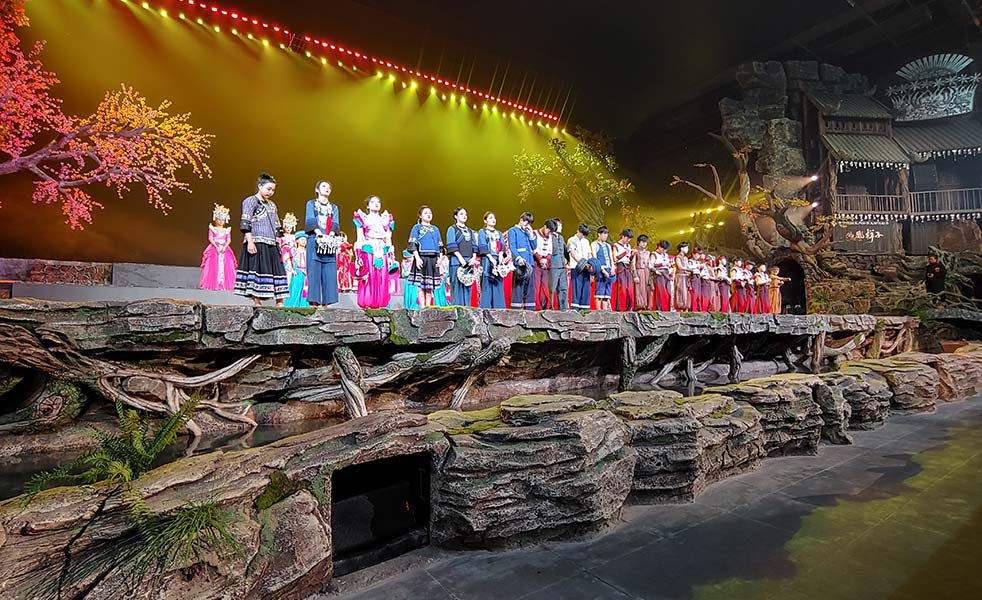 鳳凰樣子文化村是一個集民俗文化演出、民族文化酒店、民俗休閑互動體驗等文旅綜合體。其中鳳凰樣子室內(nèi)實景互動演藝由多位國內(nèi)藝術大師巨擘攜手打造,將千年湘西文化濃縮成一幕幕繪聲繪色的精彩演出,實景劇場表演采取突破、顛覆傳統(tǒng)藝術呈現(xiàn)形式的創(chuàng)新手段,全景展現(xiàn)苗族土家族傳統(tǒng)民俗風情,為觀眾帶來沉浸式互動體驗,身臨其境感受古城鳳凰獨特魅力,揭開千年鳳凰神秘面紗,讓世界各地游客來領略不一樣的“鳳凰樣子”。