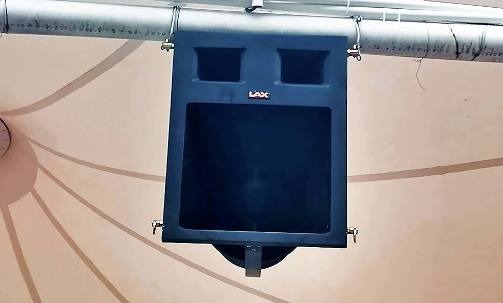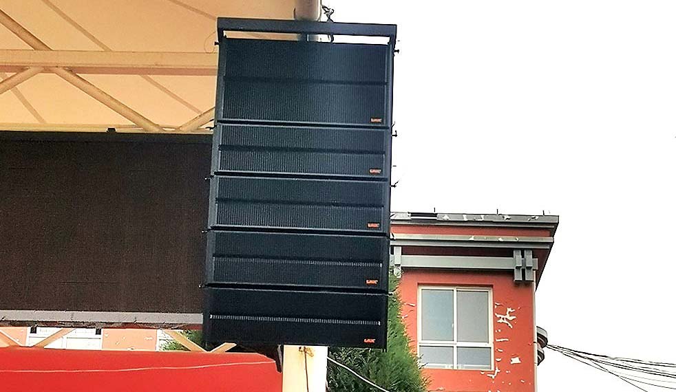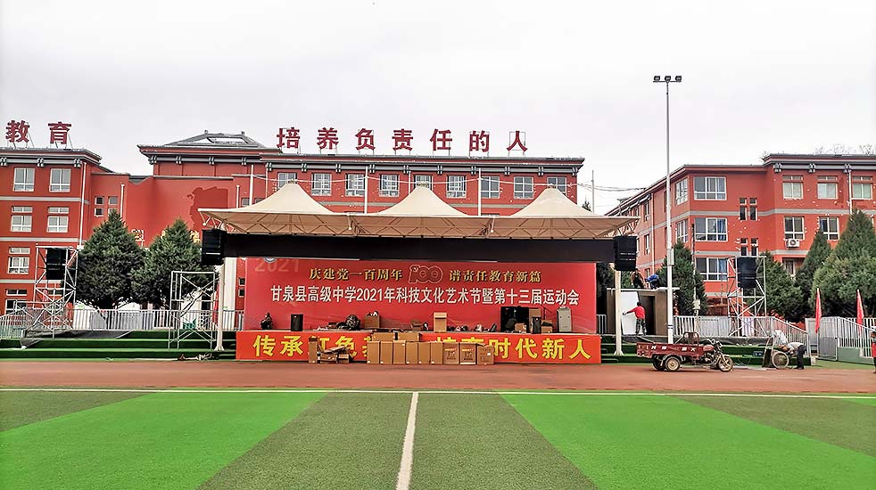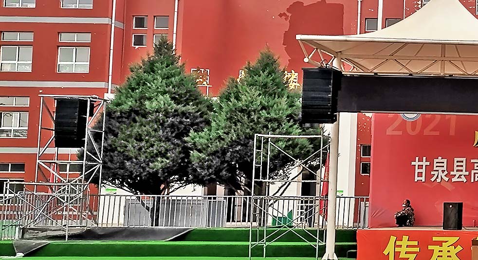 考慮到操場區(qū)域,要求聲場均勻,LAX選用4組(4只雙8線性陣列音箱AT208+1只雙15寸超低頻音箱AT215B)作為主擴(kuò)音響吊掛在主席臺左右兩側(cè),選用遠(yuǎn)程號角音箱PS3作為觀眾席補(bǔ)聲吊掛在主席上方兩側(cè),經(jīng)過精確擴(kuò)聲角度調(diào)整,能夠確保操場主席臺、觀眾區(qū)及運(yùn)動場區(qū)域覆蓋均勻、聲音準(zhǔn)確、音質(zhì)清晰。