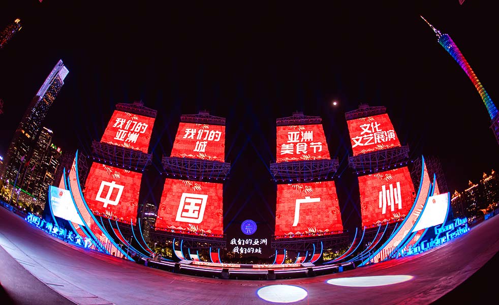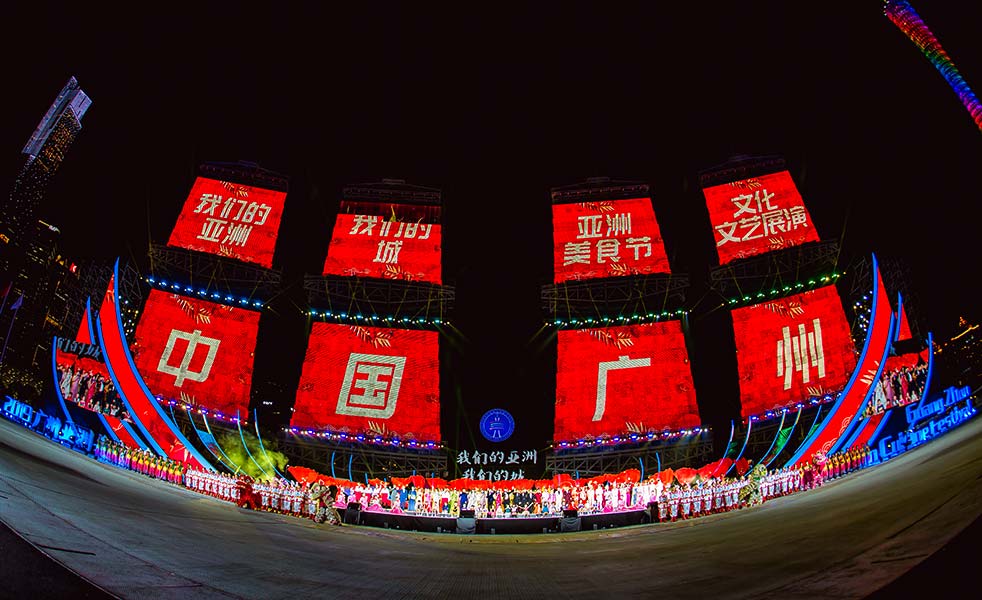 廣州亞洲美食節(jié)“我們的亞洲,我們的城”開幕式文化文藝展演在海心沙亞運(yùn)廣場(chǎng)內(nèi)震撼上演。