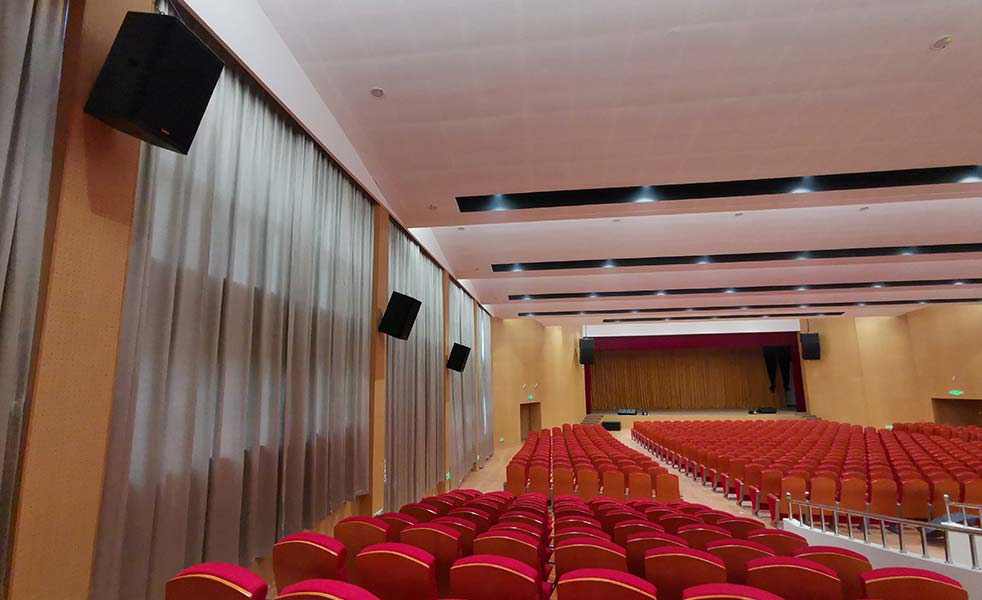 報告廳裝置AT210、ATH18B(8+2)作為主擴(kuò)聲;S218B超低2只、QS15補(bǔ)聲6只、QS12返聽4只。