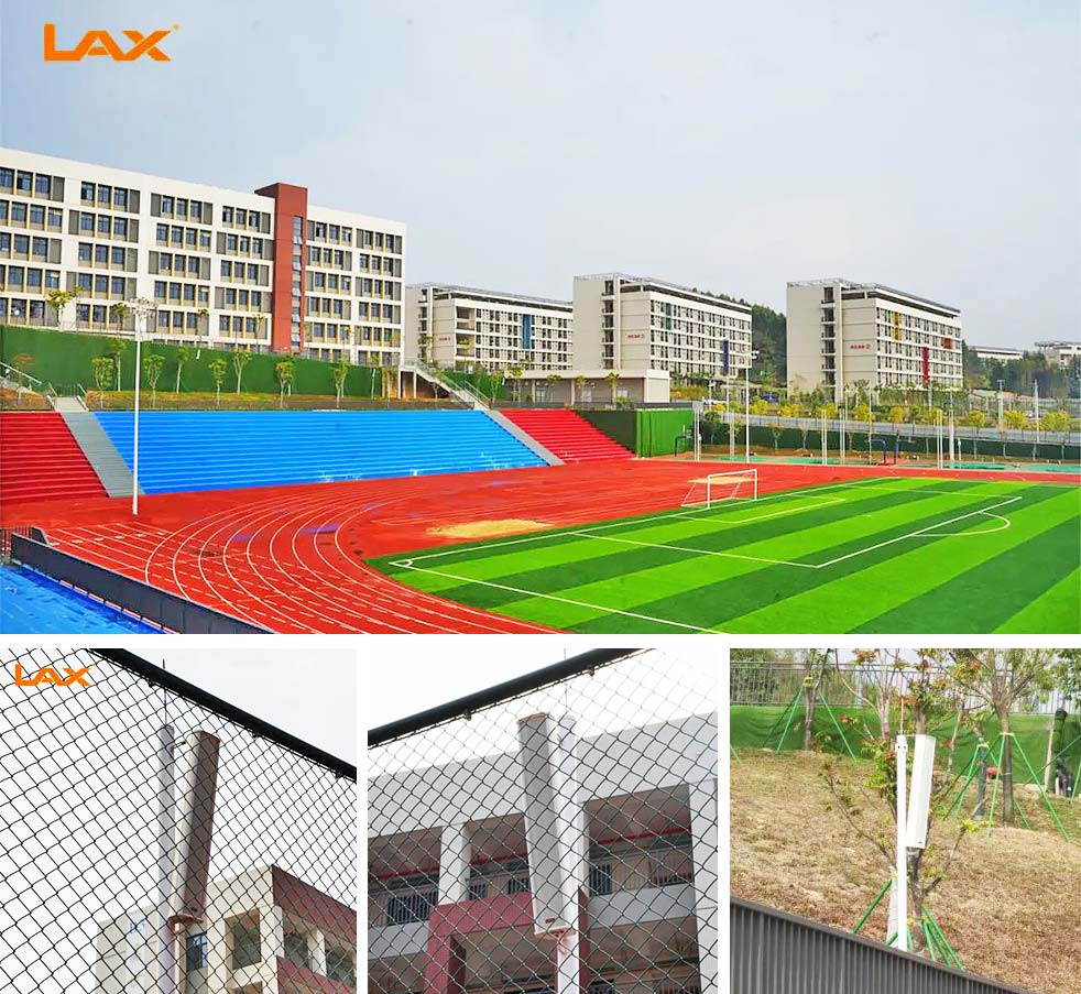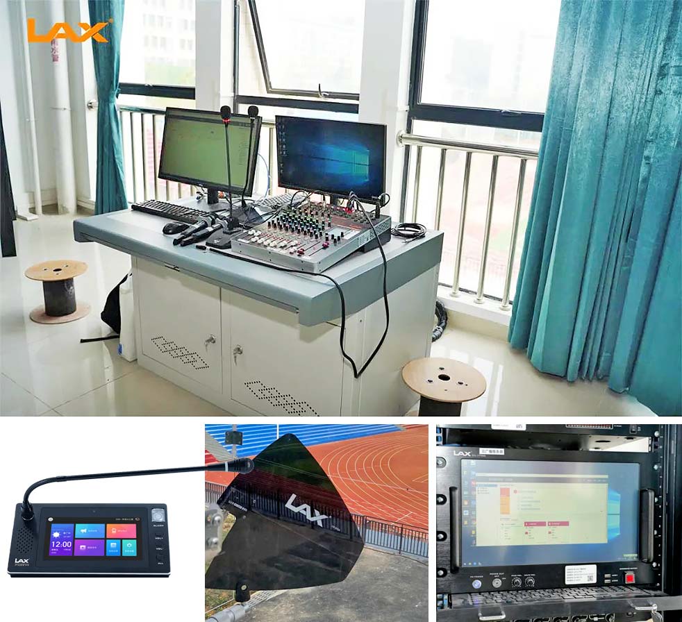 運(yùn)動(dòng)場采用18只120W戶外防水音柱,平均分布400米跑道圈內(nèi),使用2臺(tái)1500W功放驅(qū)動(dòng),設(shè)備放置廣播站內(nèi)。