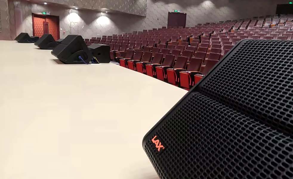 景德鎮(zhèn)市群眾文化活動中心劇場內(nèi)全線使用LAX產(chǎn)品,主擴(kuò)使用LAX AT110全頻線陣列揚聲器搭配ATL18B超低頻揚聲器使用,分別位于舞臺左右兩側(cè)吊掛,還有使用到TC815全頻揚聲器、S218B超低頻揚聲器,舞臺返送方面使用到AT12M作為返送音箱,U8 為臺唇音箱。