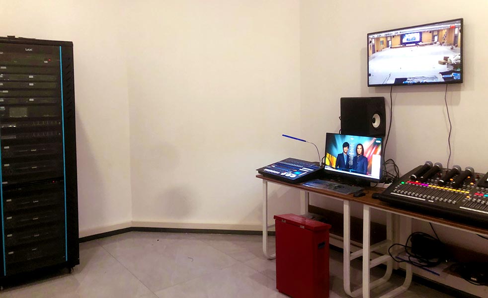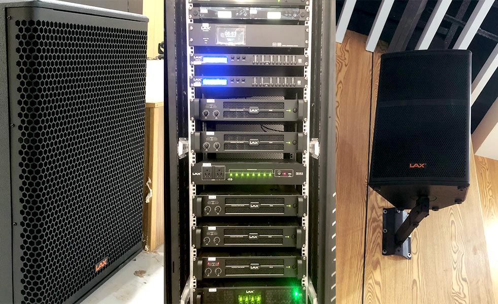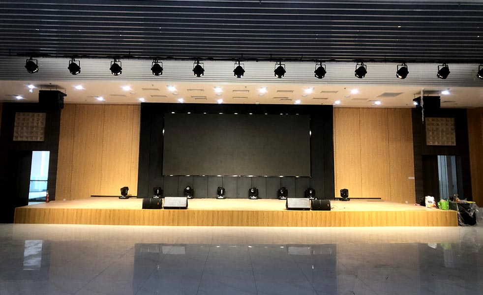 結(jié)合該公司多功能廳的實(shí)際擴(kuò)聲需求和功能,在舞臺上方吊掛了LAX AT110-V2單10寸二分頻二驅(qū)動線陣音響作為主擴(kuò)聲系統(tǒng) ,在舞臺擺放LAX FS18B超低頻音箱為整場提供良好的低頻沖擊力,還有LAX AT12M返聽音箱及LAX SC112臺唇補(bǔ)聲音箱。在四周壁掛TW112輔助音箱為中后場分區(qū)域補(bǔ)聲。