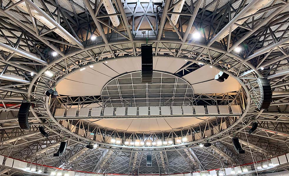 渠縣體育館是渠縣公共文化體育中心一期項目,投資約1.8億元,總建筑面積約30000平方米。是集體育競賽、訓(xùn)練健身、會展演出、應(yīng)急避災(zāi)等功能于一體的中型體育館,并且會在下一屆達(dá)州市市運會使用。經(jīng)過多次商討,最終選用LAX的揚聲器作為體育場的主場擴(kuò)聲。