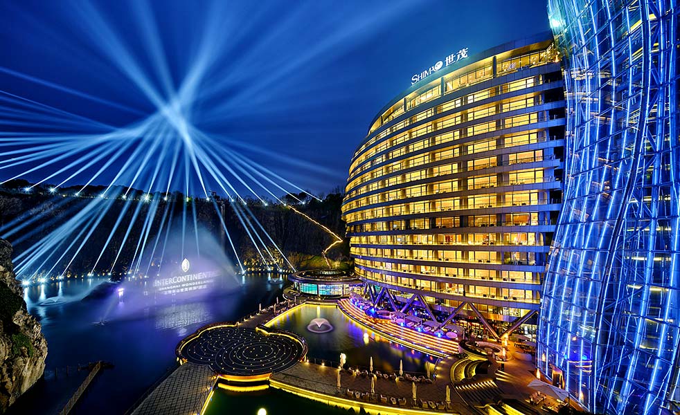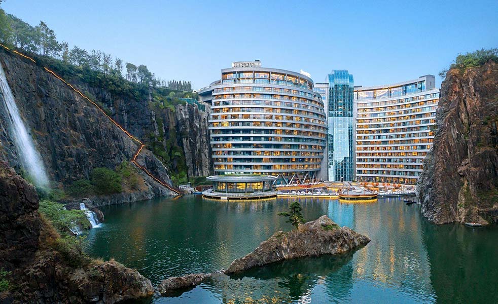 海佘山世茂洲際酒店是一座于采石坑內(nèi)建成的自然生態(tài)酒店。一反向天空發(fā)展的建筑理念,下探地表88米,依附深坑崖壁而建。被美國國家地理譽(yù)為“世界建筑奇跡”。世茂以“城市治愈自然”為理念,將自然傷痕變?yōu)楣鍖?。酒店坐落于上海之?佘山,距離上海虹橋國際機(jī)場及上海虹橋火車站32公里,毗鄰佘山國家森林公園、辰山植物園等多處旅游勝地。