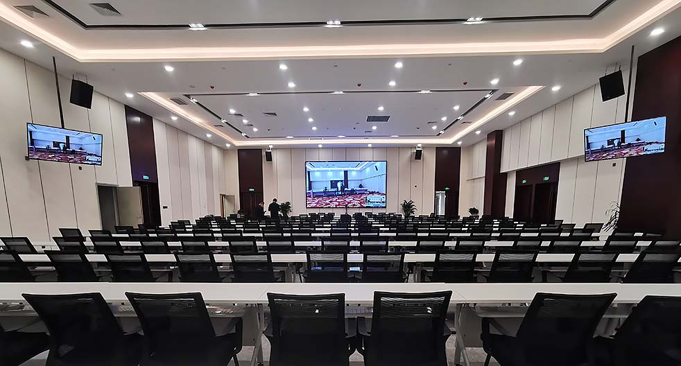 銳豐科技lax為榆林會(huì)展中心報(bào)告廳、會(huì)議室、宴會(huì)廳提供擴(kuò)聲服務(wù)。