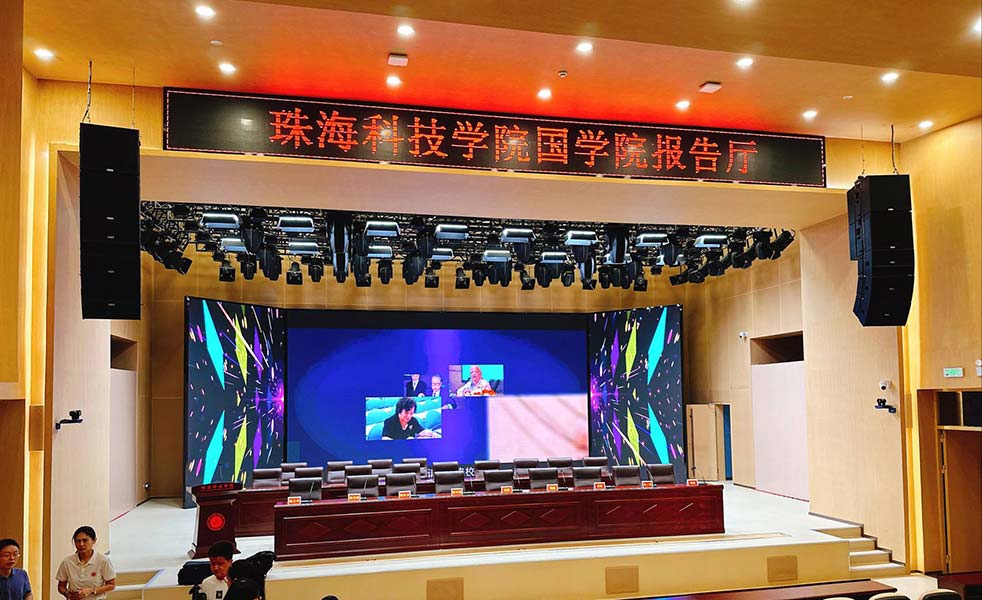 我司為珠??萍紝W(xué)院國學(xué)院報(bào)告廳提供LED顯示系統(tǒng)、燈光系統(tǒng)、擴(kuò)聲系統(tǒng)、會(huì)議錄播系統(tǒng)、無線數(shù)字會(huì)議系統(tǒng)、遠(yuǎn)程視頻會(huì)議系統(tǒng)、無紙化會(huì)議系統(tǒng)、電子桌牌、同聲傳譯系統(tǒng)、中控管理系統(tǒng)解決方案。