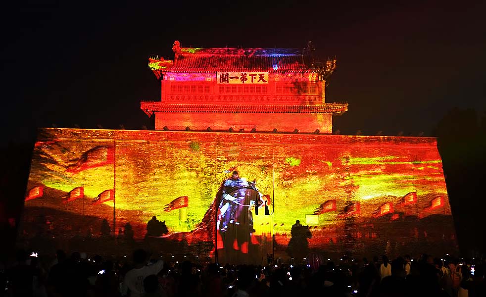 天下第一關(guān)《觀?山?!烽L城情境光影秀,是一場以多媒體技術(shù)結(jié)合光影科技,情、景、人、秀合一的深度互動空間情境秀;配合最新形式的多媒體影像技術(shù)手段,讓觀眾近距離領(lǐng)略“天下第一關(guān)”的烽煙往昔與今朝美景,再現(xiàn)古城墻的絕代風(fēng)華。