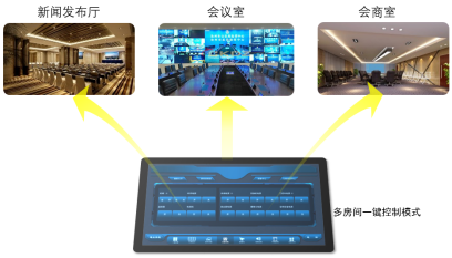 會議室、會商室、研討室、新聞發(fā)布廳、多功能廳等多區(qū)域均可通過無線觸控屏集中控制和管理,實(shí)現(xiàn)全局統(tǒng)一管理。
