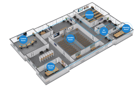 系統(tǒng)可實(shí)現(xiàn)各個(gè)會議室、會商室和研討室室之間互聯(lián)互通,整個(gè)系統(tǒng)內(nèi)所有音、視頻信號互聯(lián)互通,統(tǒng)一調(diào)度管理,所有實(shí)時(shí)接入的信號,都可以同步進(jìn)行切換至任一區(qū)域的任一顯示設(shè)備上,方便不同區(qū)域?qū)崟r(shí)分享同一信息。