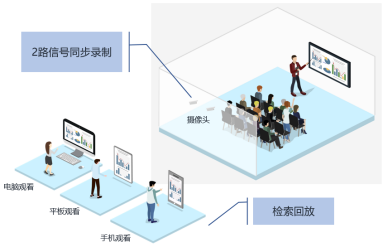 系統(tǒng)支持通過接入錄播平臺,任意指定錄制系統(tǒng)內(nèi)各路信號,支持同時(shí)2路信號同步錄制功能,可通過各類終端對錄制的信號內(nèi)容進(jìn)行檢索回放。