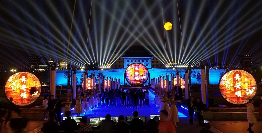 《長安頌》是國賓級禮儀文化演出《夢長安》的姊妹篇,依托永寧門的建筑特點及周邊環(huán)境,借助投影、燈光、水幕等設(shè)施,全方位的展現(xiàn)西安十三朝古都、三千年文化積淀的人文歷史景觀,帶領(lǐng)觀眾穿過千年之門,認識西安、了解西安,體驗西安城市魅力。