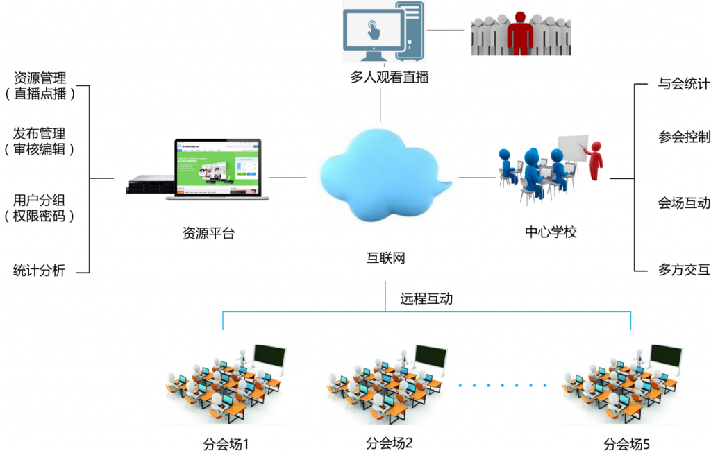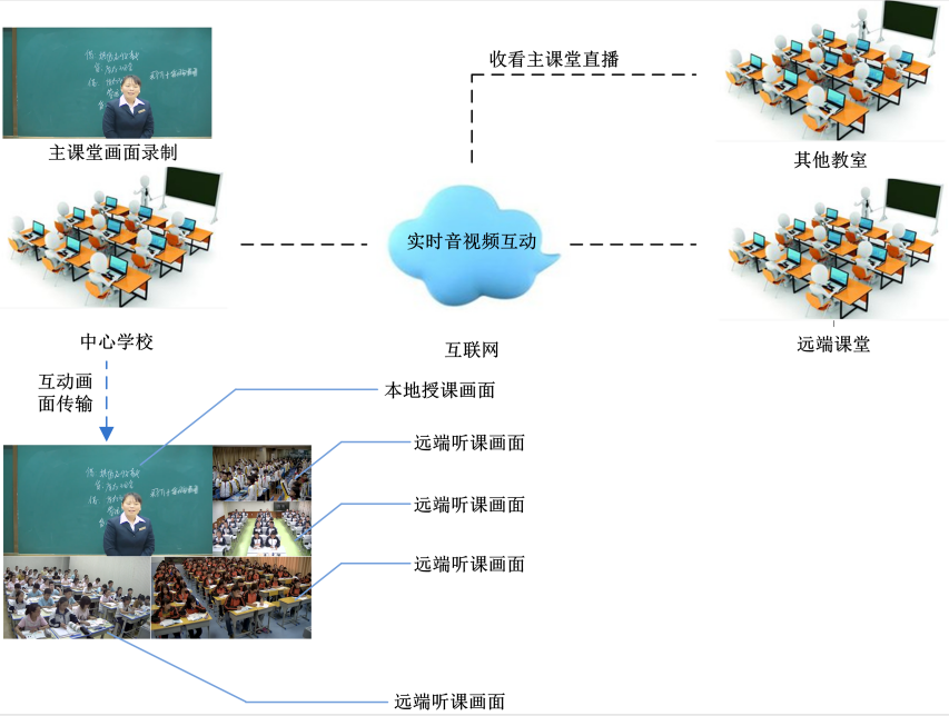 建設(shè)一個互動課堂通訊大平臺,建立多間高清互動課室,突破時間空間局限,搭建不同班級、不同學(xué)?;ヂ?lián)互通的教學(xué)橋梁,使中心學(xué)校與薄弱學(xué)校之間實現(xiàn)一對一的互動教學(xué),擴大教育的輻射力度,解決貧困地區(qū)教育資源的短缺問題,進一步構(gòu)建教育信息化共建共享機制,實現(xiàn)教育資源均衡化。